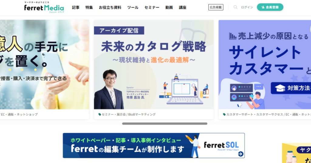 Webマーケティングに関わる担当者であれば、一度は目にしたことがあるであろう日本最大級のマーケティングメディアです。このメディアの本質的価値は、情報発信だけでなく、検索流入からリード(見込み顧客)獲得までの流れが、高度にシステム化されている点にあります。